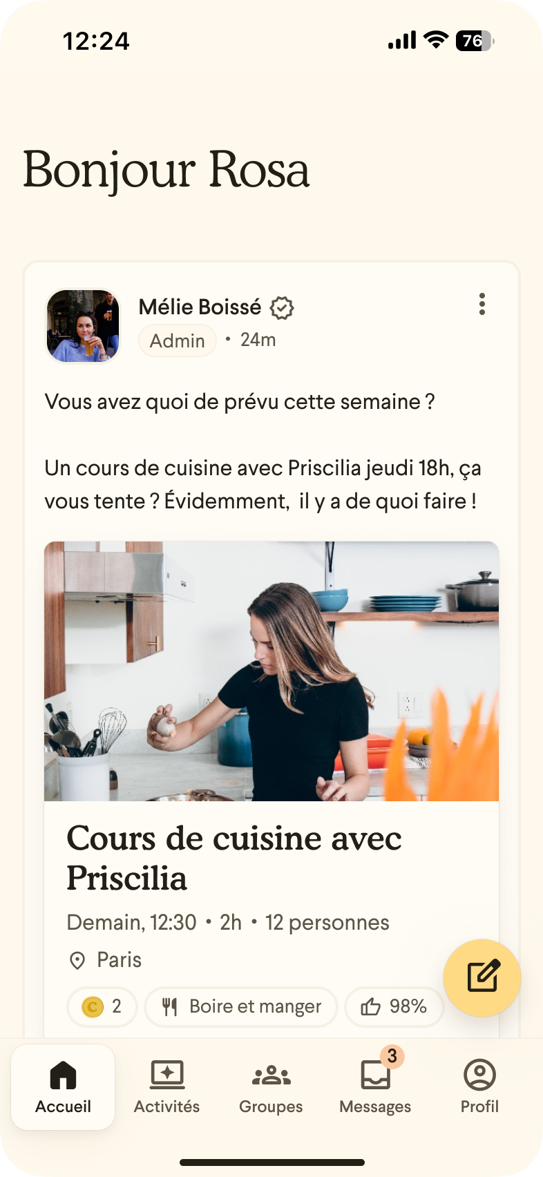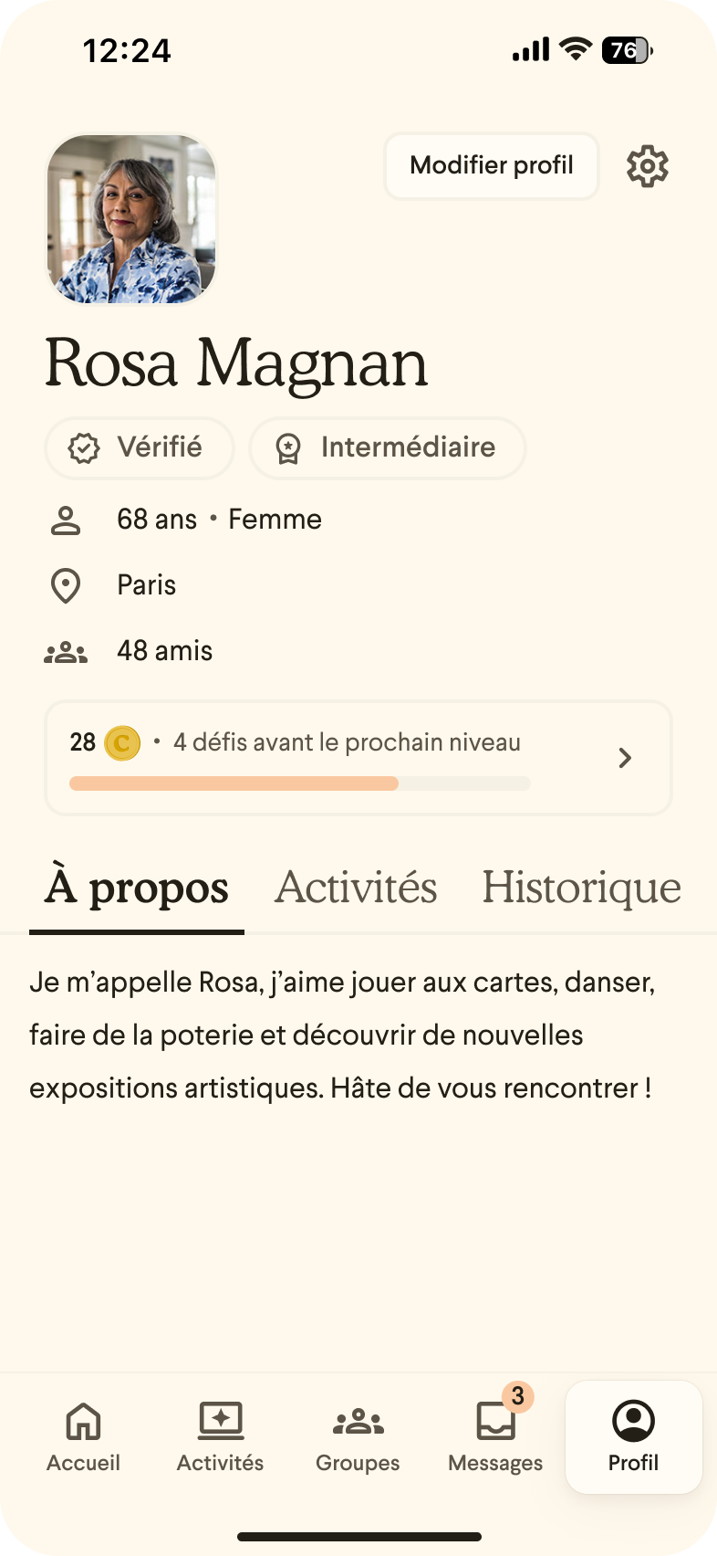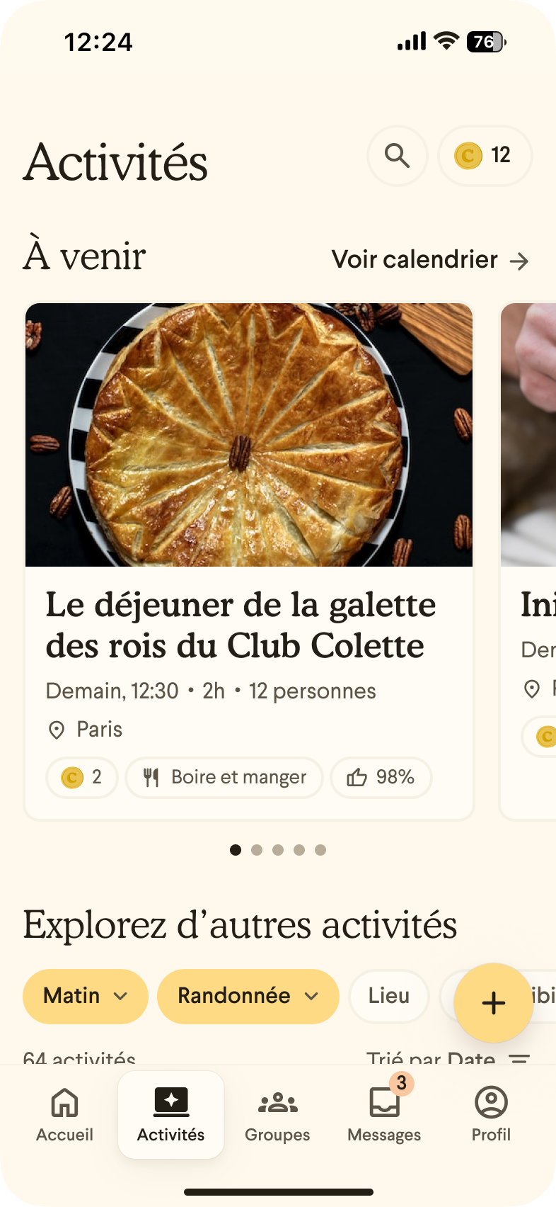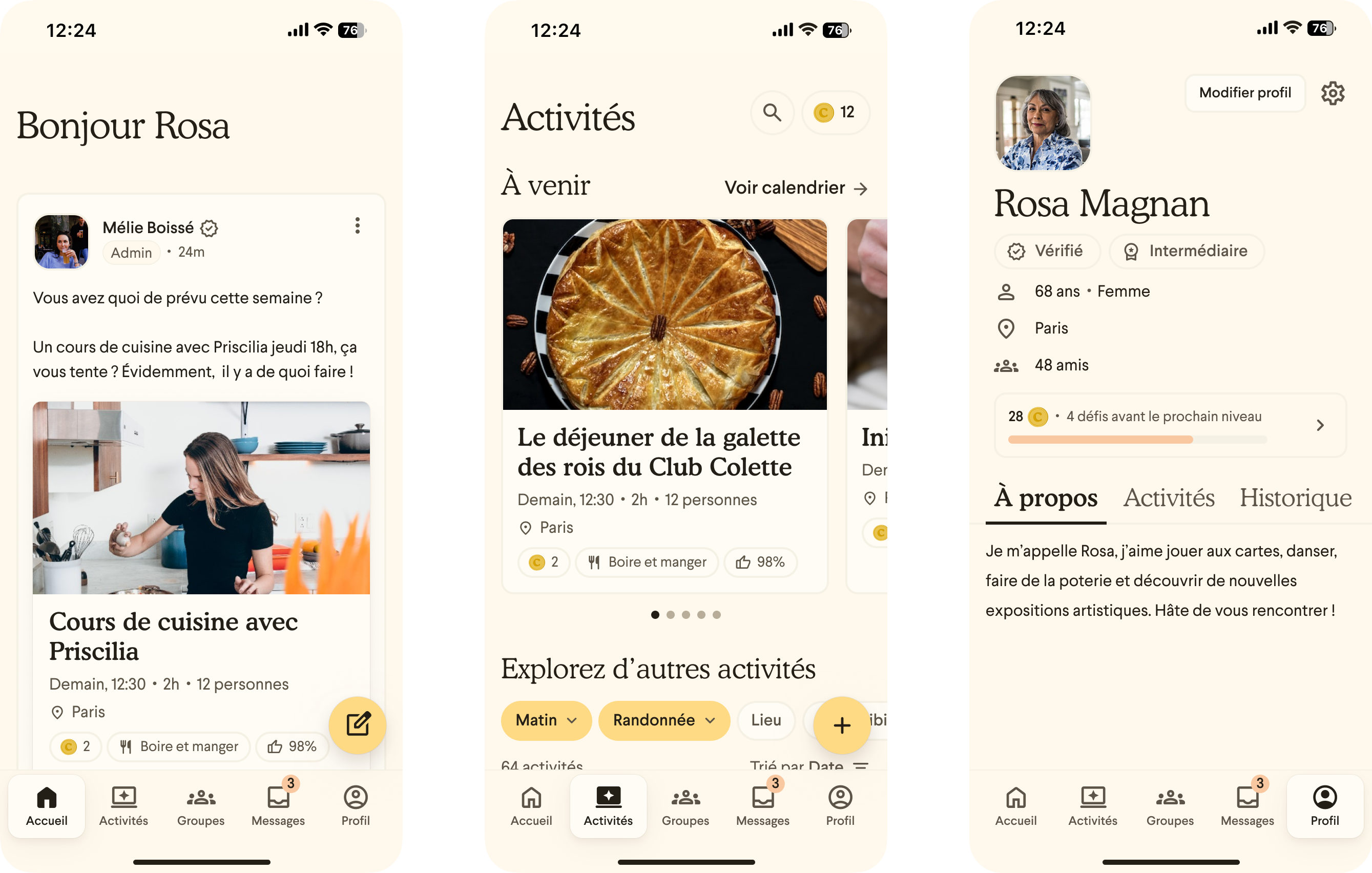 Colette is a mobile-first social platform designed to help people aged 55+ connect, discover activities, and build meaningful relationships. As the lead product designer, I partnered with Colette from the earliest discovery phase through to launch, shaping an inclusive, accessible, and joyful digital experience for seniors.